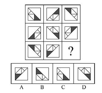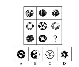 4.要求你从四个选项中选择你认为最适合取代问号的一个。正确的答案应使每题的图形呈现一定的规律性。