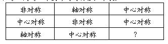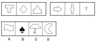 每一行、每一列均有一个非对称图形和两个对称图形(轴对称或中心对称),因此问号处应该为非对称图形,B项符合。